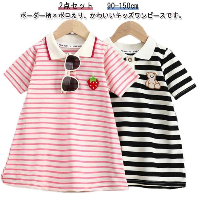お出かけ ポロ襟 半袖 ワンピース 女の子 ボーダー キッズ 110 子供 子どもワンピース 90 姉妹 お揃い かわいい おしゃれ シンプル 子供 100 2点セット 120 130 140