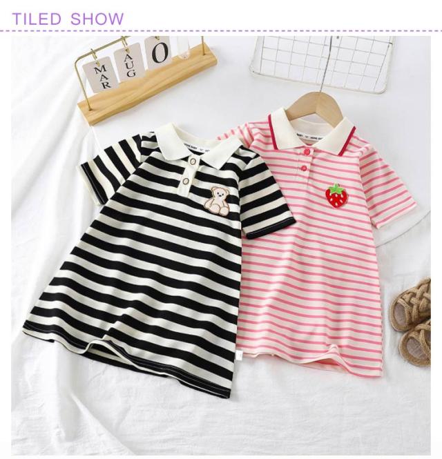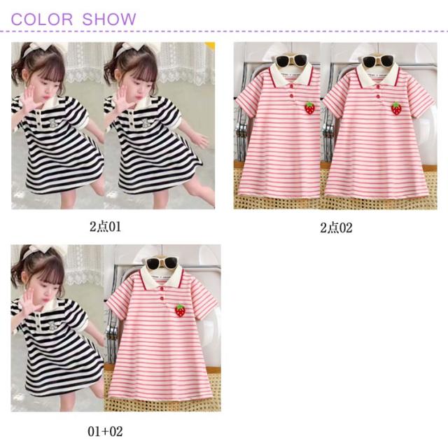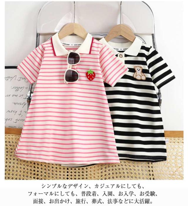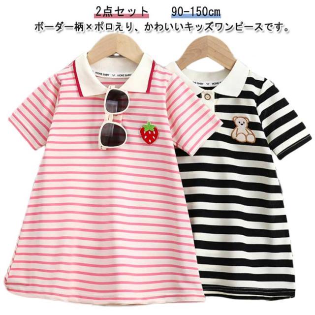 2点セット 子供 かわいい ワンピース お揃い ボーダー 半袖 女の子 ポロ襟 子どもワンピース お出かけ おしゃれ 2点セット 姉妹 キッズ シンプル 90 100 110 120 130 140