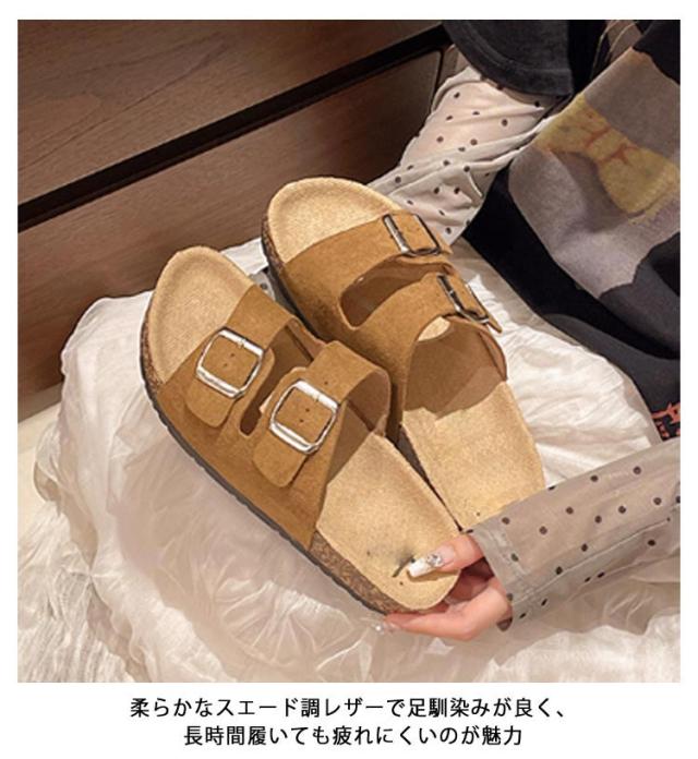 ミュール スリッパ レディース ベルトサンダル ダブルベルト ミュール サンダル カジュアル サンダル メンズ 厚底 コンフォートサンダル ぺたんこ 夏 アウトドア スエード調 オフィス履き 履きやすい 軽量 楽ちん 歩きやすい 大きいサイズ おしゃれ