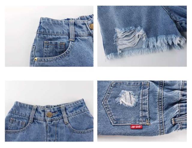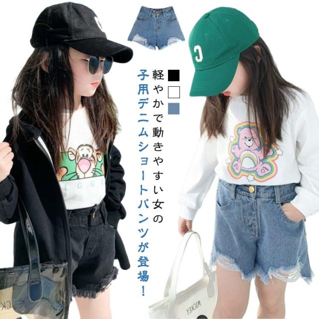 短パン ダメージ入り 女の子 キッズ デニム ジーパン ショートパンツ ジュニア デニムパンツ ウエストゴム ハーフパンツ ジーンズ 子供服 韓国 カジュアル 可愛い ポケット付き デニム 送料無料