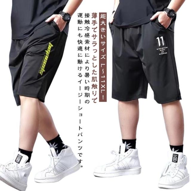 | 超大きいサイズ L〜11XL!薄手でサラっとした肌触りで接触冷感素材により暑い時期の運動にも快適に動けるイージーショートパンツです。 ストレッチと吸汗速乾効果があります。 ウエストにはゴムバンドに加えて調整紐が付いており、腰回りや好みに合わせて自由に調整可能。 | |