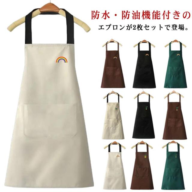 カフェエプロン 2枚セット 防油 レディース メンズ キッチン用品 防水 ガーデニング用 家庭用 エプロン 業務用 作業用 撥水 男女兼用 飲食店 料理エプロン 可愛い シンプル 無地 前掛け 母の日 プレゼント 洗える