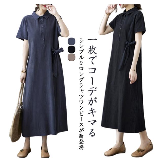 シャツワンピース シャツワンピース ワンピース 半袖ワンピース ワンピース 大きいサイズ 無地 きれいめ 夏ワンピース 大人ワンピース 秋ワンピース 春ワンピース ロングワンピース シャツワンピース Aライン通勤 入園式