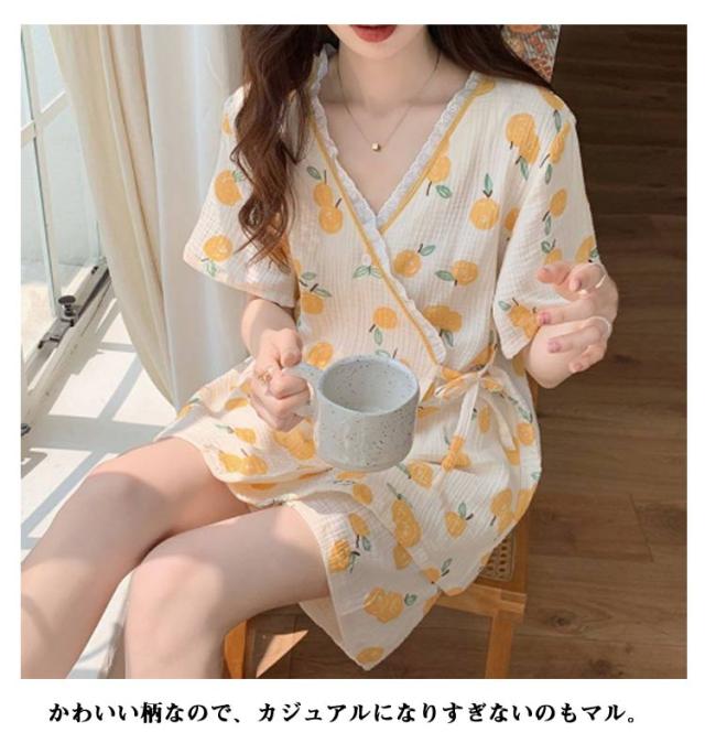大人 レディース 夏祭り パジャマ 上下セット 甚平 大人用 女性用 女の子 ルームウェア 夏用 可愛い 蜜柑柄 夏 甚平 浴衣柄