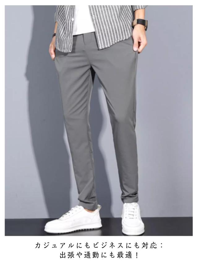 | 【2025年新作】メンズ 接触冷感 スラックス ビジネス・カジュアル スタイリッシュパンツ 上品な細身シルエット×快適な着用感でオン・オフ活躍 接触冷感素材(アイスシルク):肌に触れた瞬間ひんやり爽快 ウエストゴム仕様+調整可能:食後や長時間の着用も快適 ストレートデザイン:脚長効果&スタイルアップ 高弾力素材:動きやすく、ストレスなし ノーアイロンでもシワになりにくい:毎日のお手入れが楽 斜めポケット付き:スマホや小物の収納にも便利 カジュアルにもビジネスにも対応:出張や通勤にも最適! | |