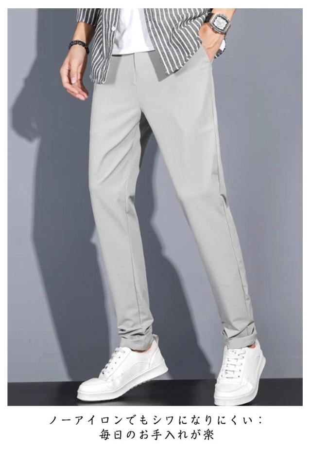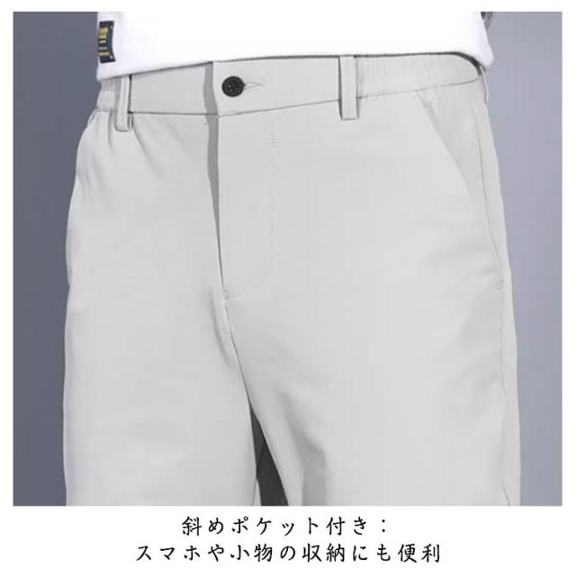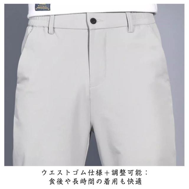 接触冷感 メンズ ゴルフパンツ 夏用 ビジネスパンツ ウエストゴム ノーアイロン 紳士服 メンズ スリム 大きいサイズ ビジカジ 通勤 ストレッチパンツ ブラック カーキ ライトグレー