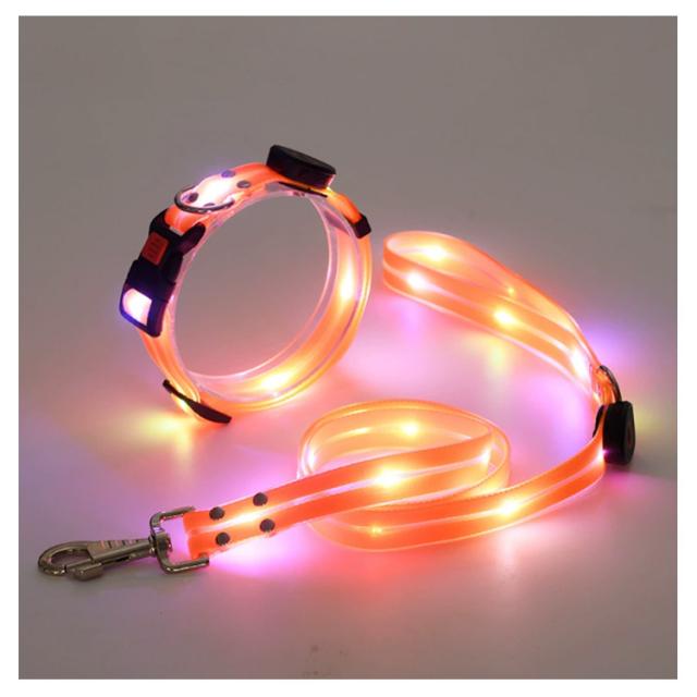 光る LED光るリード 犬 USB充電式 リード長さ120cm 首輪 ペット用 光る首輪 リードセット 光るリード サイズ調整可能 小型犬 夜間散歩 柔らかい 無臭 夜散歩ライト 軽量 安全対策 視認性 子犬 犬 中型犬 大型犬