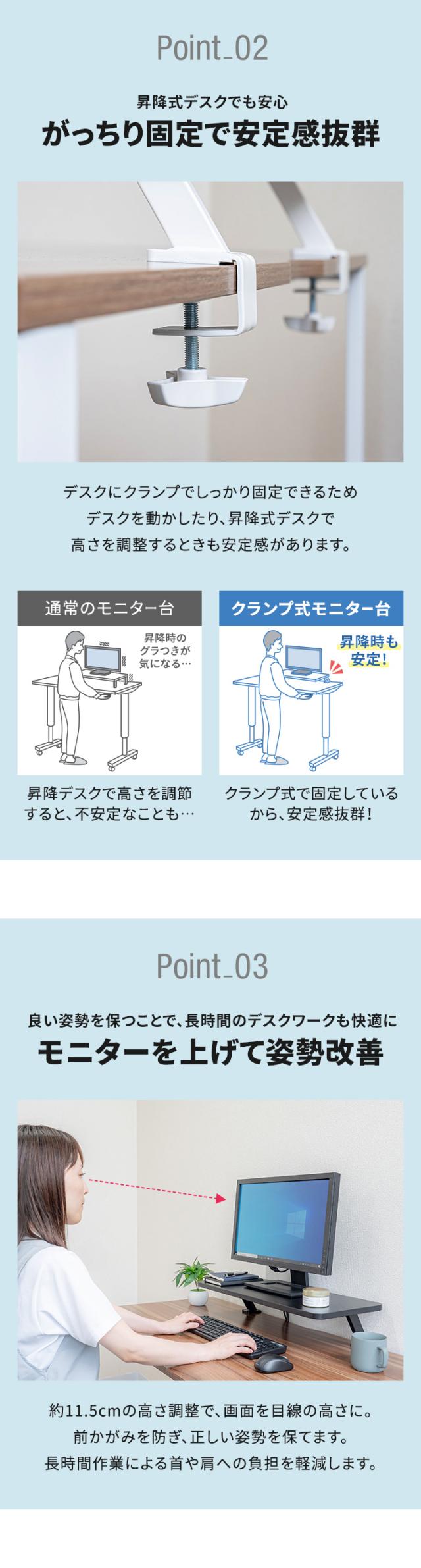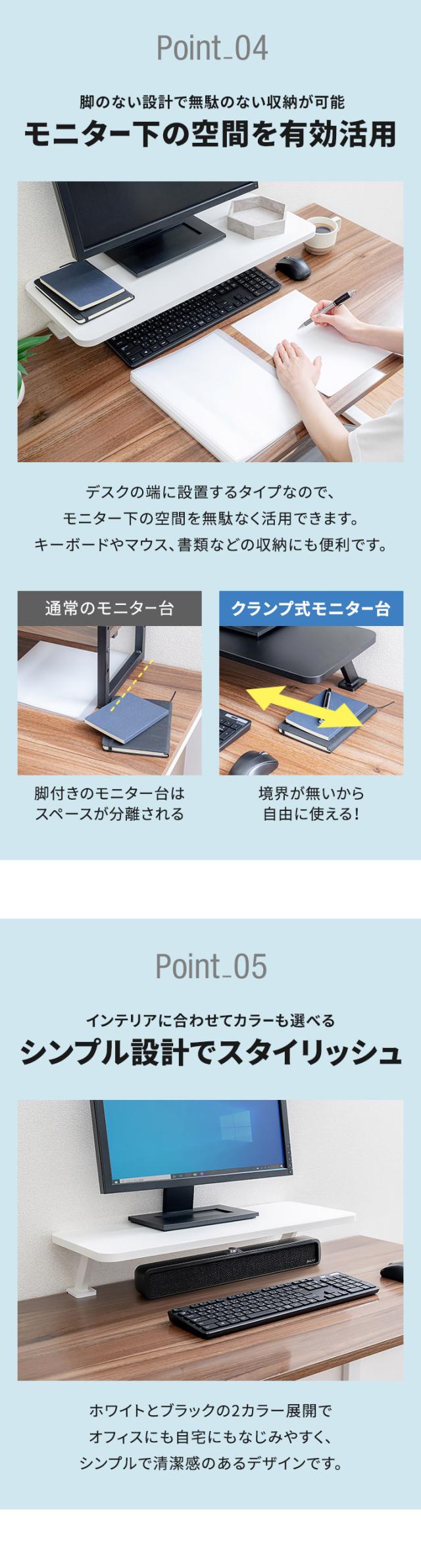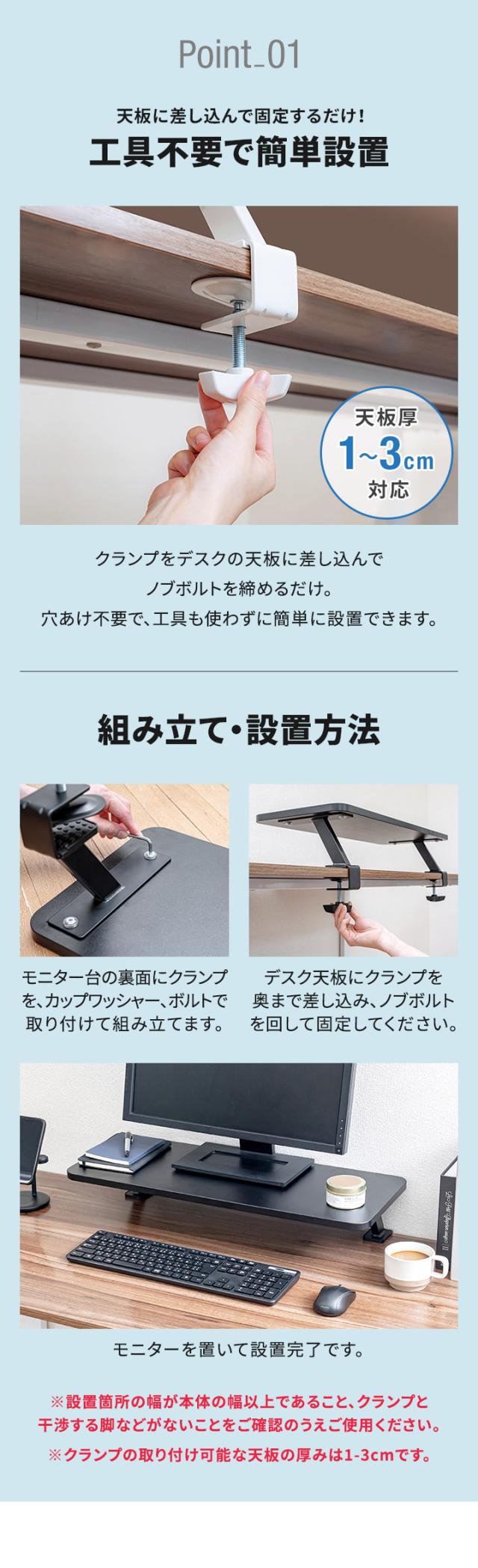 クランプ式 モニター台 モニタースタンド PCモニタースタンド 液晶モニター台 液晶モニタースタンド ディスプレイ台 ディスプレイスタンド PC台 PCスタンド パソコン台 パソコンスタンド 卓上台 卓上ラック 卓上スタンド 机上台 机上ラック 机上スタンド 机上棚 ノートパソコンスタンド ノートPCスタンド 電話台 ファックス台 プリンター台 収納 ラック キーボード収納 ノートパソコン収納 卓上机 卓上 机上 デスク上 2段 オフィス デスク PCデスク デスク周り デスク環境 デスク収納 ワークスペース 作業スペース マイデスク 書斎 仕事部屋 オフィス家具 オフィス用品 デスクツアー ガジェット ゲーミング 棚 テレワーク 在宅ワーク 在宅勤務 リモートワーク ミニターアーム デュアルモニター サブモニター 2台 幅広 ワイド 幅60cm 幅100cm 省スペース スペース活用 小物 置き物 書棚 本棚 飾り棚 おしゃれ オシャレ おすすめ オススメ インテリア ミニマリスト シンプル モノトーン ホワイト 白 ブラック 黒 インテリア・寝具・収納 オフィス家具 オフィス収納 デスク上置棚