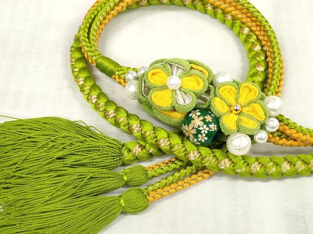 平和屋着物●和装小物 振袖用帯締め 飾り付き パール 飾り玉 つまみ細工 丸組 金糸 逸品 未使用 DAAS6427zzz