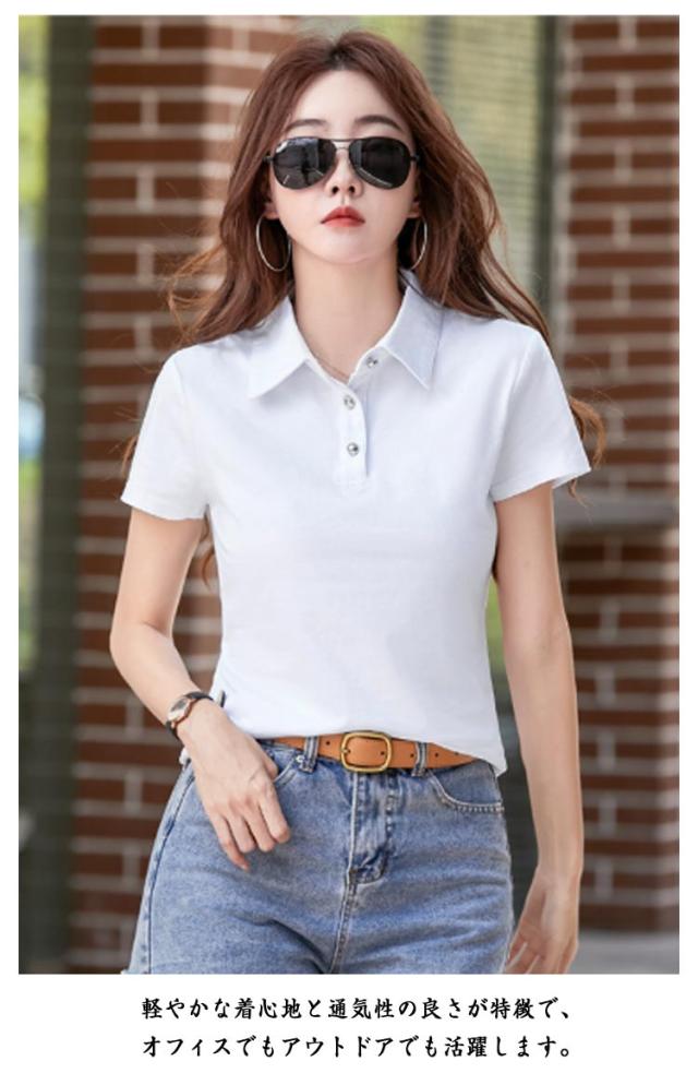 ゴルフ ポロシャツ レディース 高品質 ポロシャツ 綿 シャツ おしゃれ 半袖 ポロシャツ Tシャツ 半袖 トップス 春 夏 tシャツ 夏服 スリット シンプル 大人 カジュアル おしゃれ かわいい スリム 黒 白 ゴルフウェア 送料無料