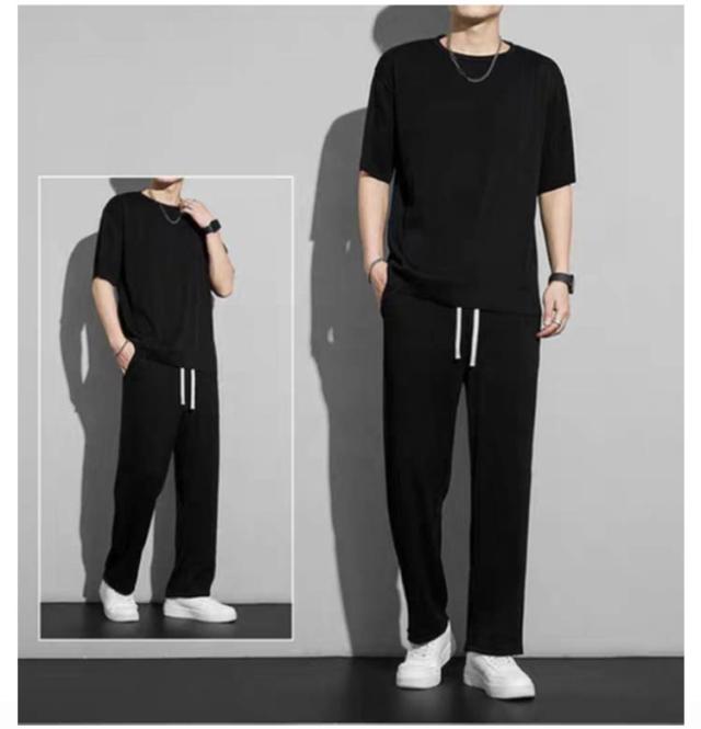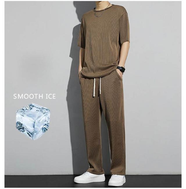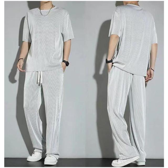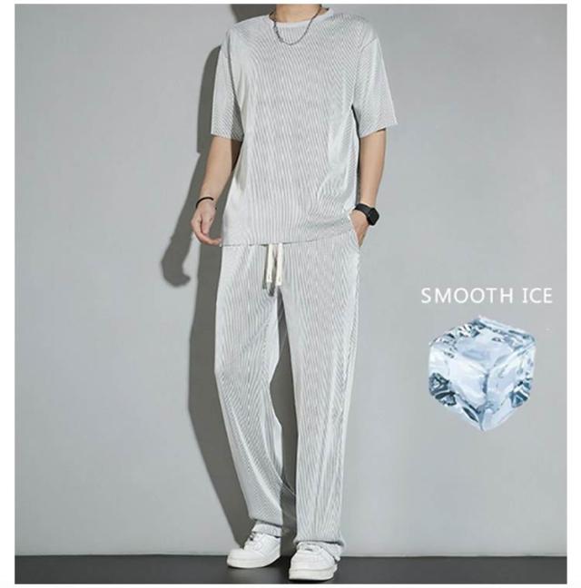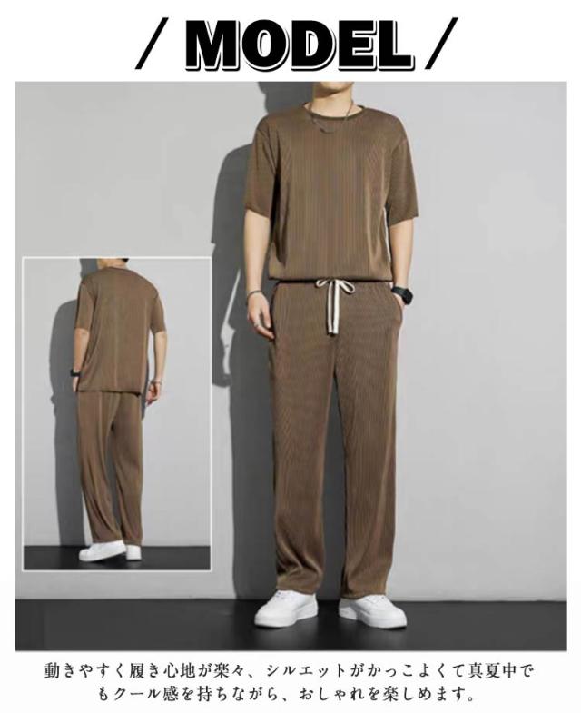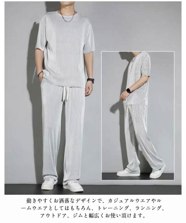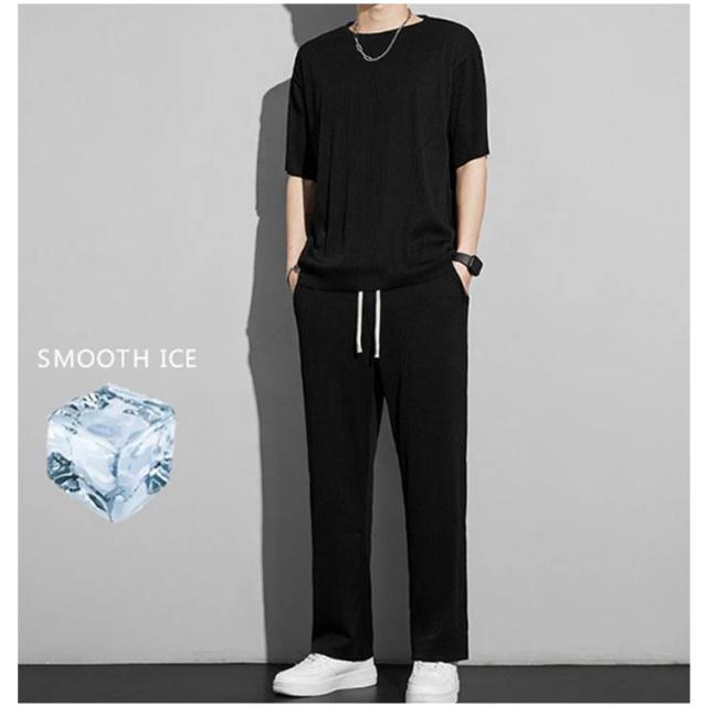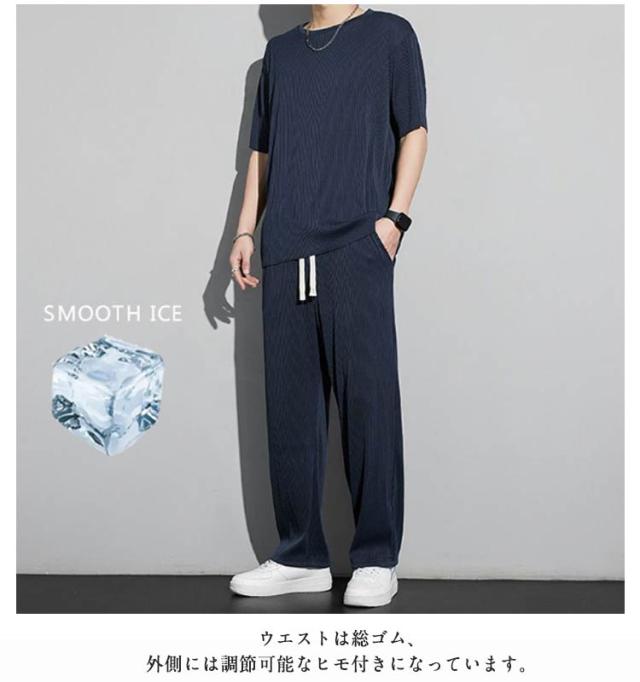 セットアップ メンズ アイスシルク 接触冷感 Tシャツ 半袖 上下セット ロングパンツ ワイドパンツ 2点セット スポーツウェア 夏 薄手 半袖tシャツ ゆったり 大きいサイズ 夏服 ストレッチ 伸縮性 無地 アウトドア 運動着 送料無料
