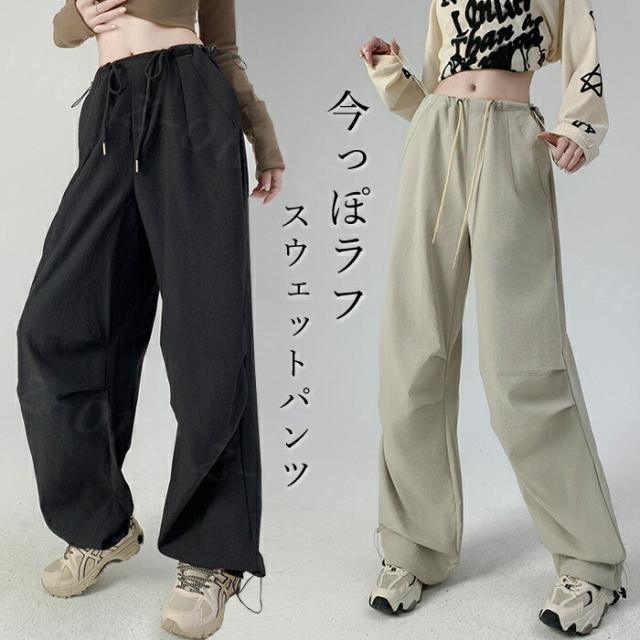 パンツ ワイドパンツ ドローコード付き 新作 レディース 夏 春 ロング カーキベージュダークグレーネイビーライトグレーホワイトブラック 秋