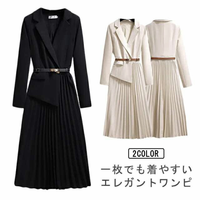 母 卒園式 入学式 ワンピース セレモニースーツ 卒業式スーツ 七五三 スーツワンピース レディース 春秋 Vネック プリーツワンピース 長袖 エレガント ママス フェイクレイヤード