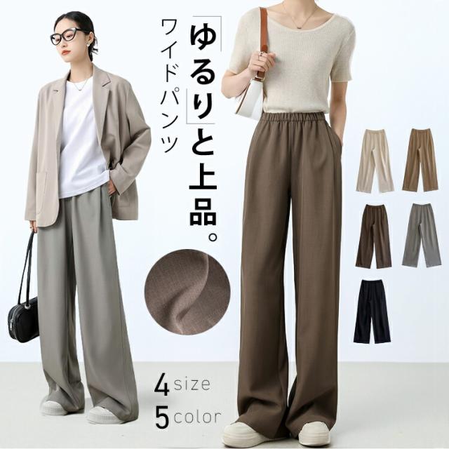 春夏 ワイドパンツ レディース きれい ボトムス パンツ 超目玉商品 S M L XL アイボリー ブラウン ダークブラウン グレー ブラック