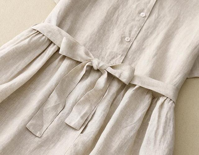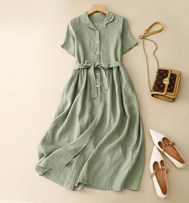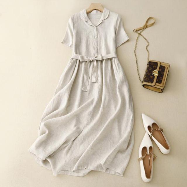 シャツワンピースリネンワンピース ロングワンピース ベルトありナチュラル 半袖 大人可愛い カジュアル シンプル おしゃれ お出かけ デート 普段使い デイリー 麻 リネン ワンピース 着回し