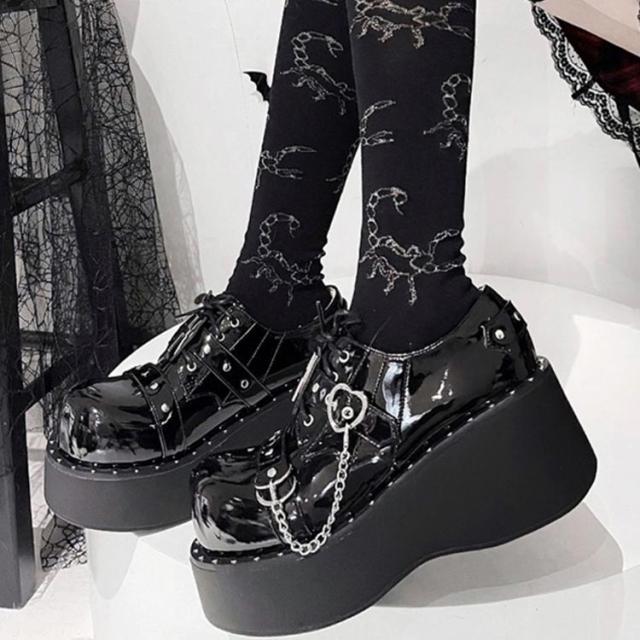 超厚底 ローファー パンプス ゴスロリ ゴシック パンク レディース 厚底 靴 身長アップ 6cmヒール ロリータ 地雷系 厚底靴 サブカル系 原宿系 仮装 お姫様 エナ コスプレ