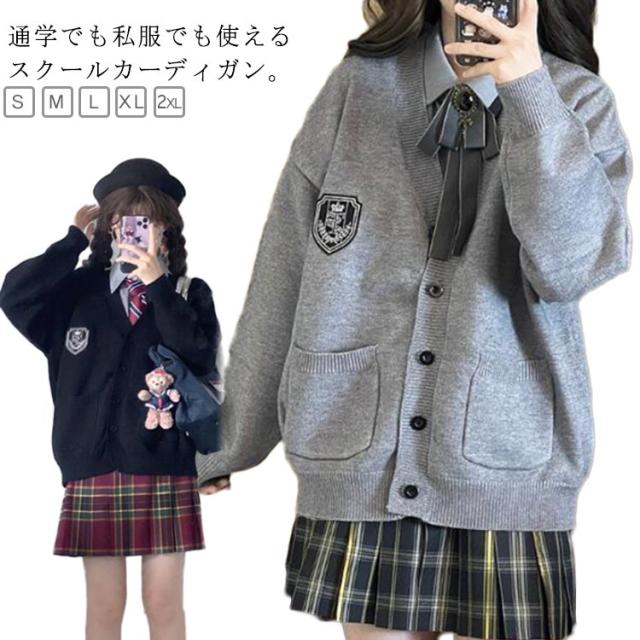 制服 カーディガン 前開き 学校 Vネック ニット トップス スクールカーディガン 学生 長袖 女子 レディース 中学生 高校生 スクール 洗える シンプル 無地 着痩せ おしゃれ ポケッ カジュアル