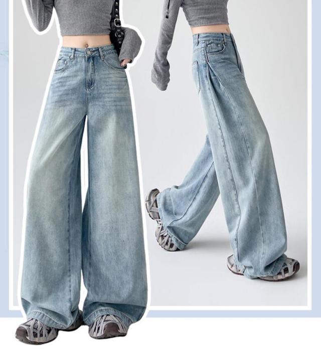 ワイドパンツ デニム デニムパンツ レディース 選べる丈 ジーンズ パンツ ジーパン かっこいい カジュアル ゆったり ダンス ヒップホップ ゆるめ ウォッシュ加工 韓国ファッション かわいい
