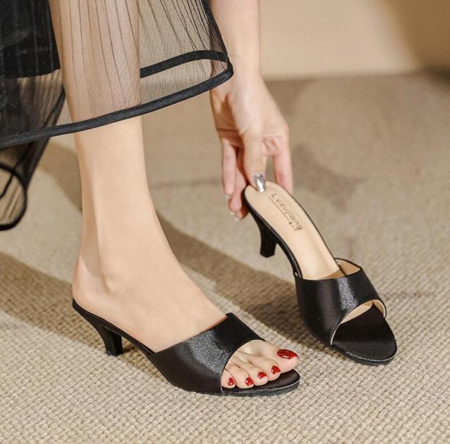 サンダル ハイヒールミュール レディース 痛くない 脱げない スクエアトゥ靴 美脚 ハイヒール ピンヒール6cmヒール 大きいサイズ 靴 オ ミュール