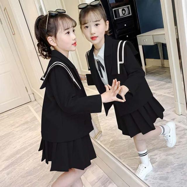 女の子 制服 スーツセット ブレザー 小学生 女子 入学式 中学生 卒業式 高校生 卒服 ピアノ発表会 韓国 スーツ ブラック 3点セット 白シャツ 長袖 スカート 子供 七五三 面 ジュニア