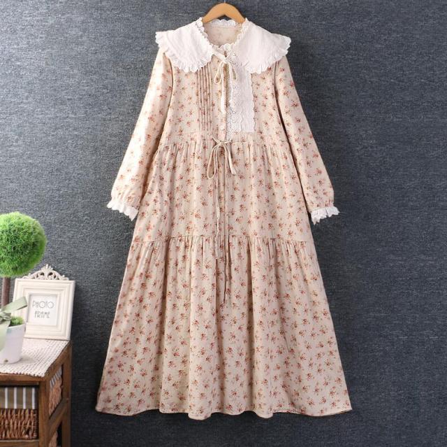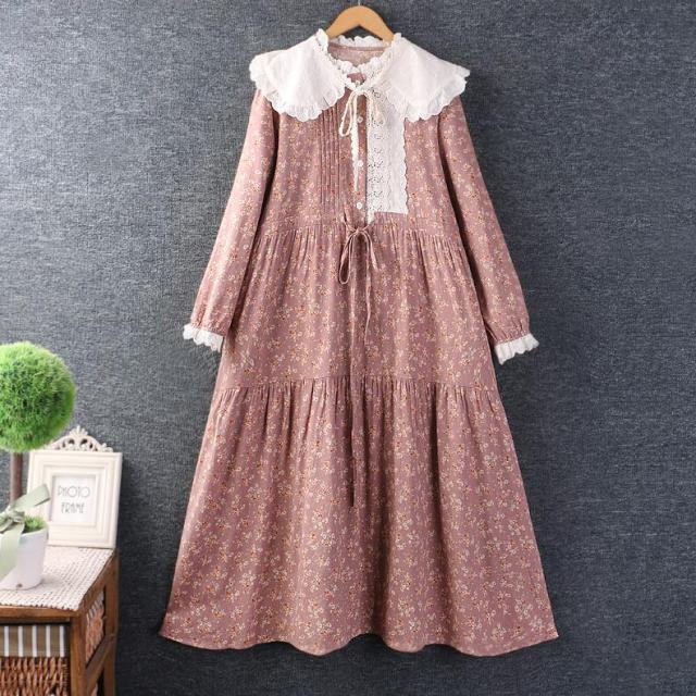 花柄ワンピース チュニック レディース ロングワンピース リネンワンピース 長袖 ロングワンピ 綿麻 リネン コットン 綿麻ワンピース 花柄 ゆったり リラックス 春 カジュアル風 体型カバー