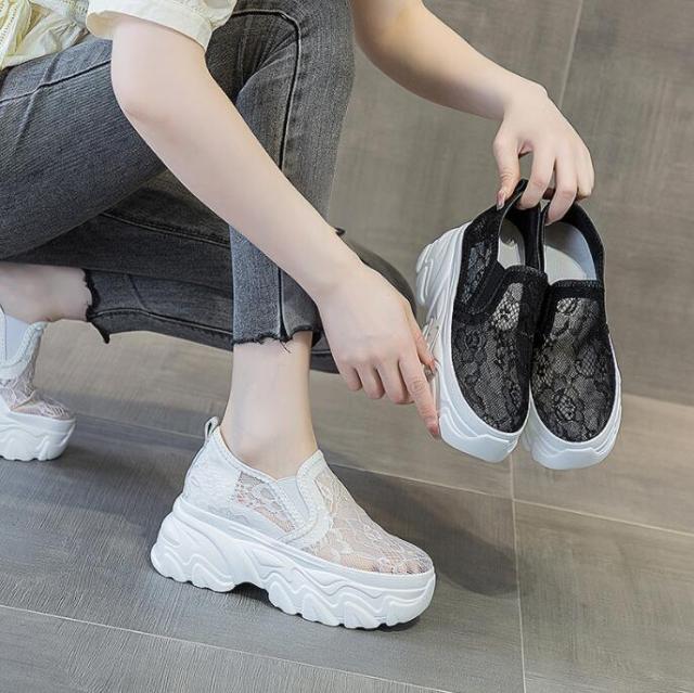 インヒールスニーカー 厚底 総レーススニーカー レディース スリッポン インヒール スニーカー レディーススリッポンヒール8cm レディース靴 シューズ 厚底ス ハイカットスニーカー