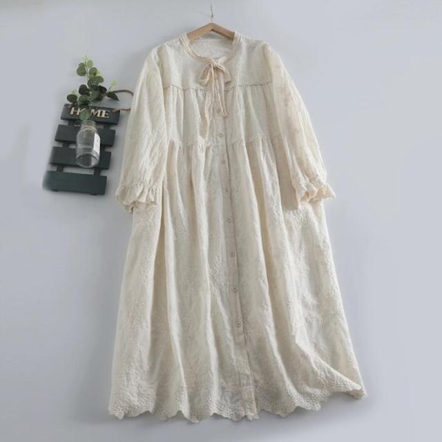 ワンピース チュニック レディース ロングワンピース リネンワンピース 長袖 ロングワンピ 綿麻 リネン コットン 綿麻ワンピース 花柄 ゆったり 体型カバー 春 カジュアル風 マ リラックス