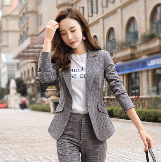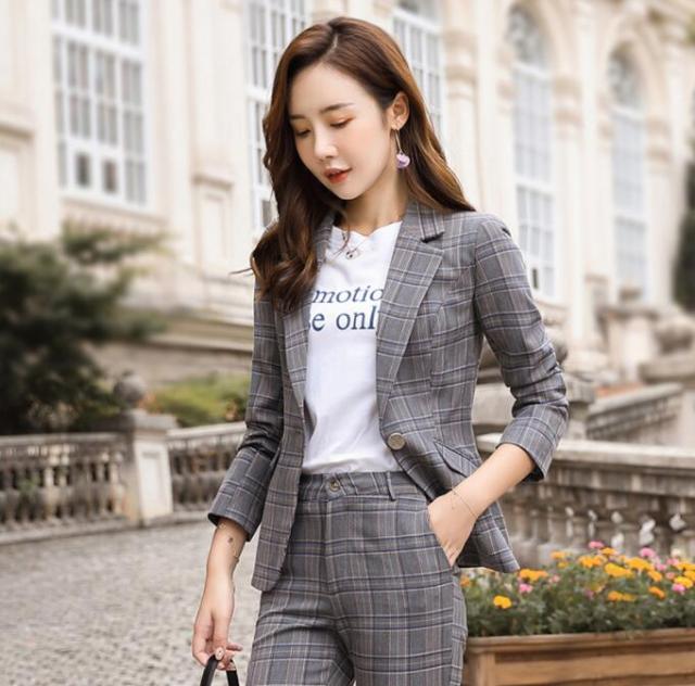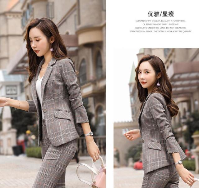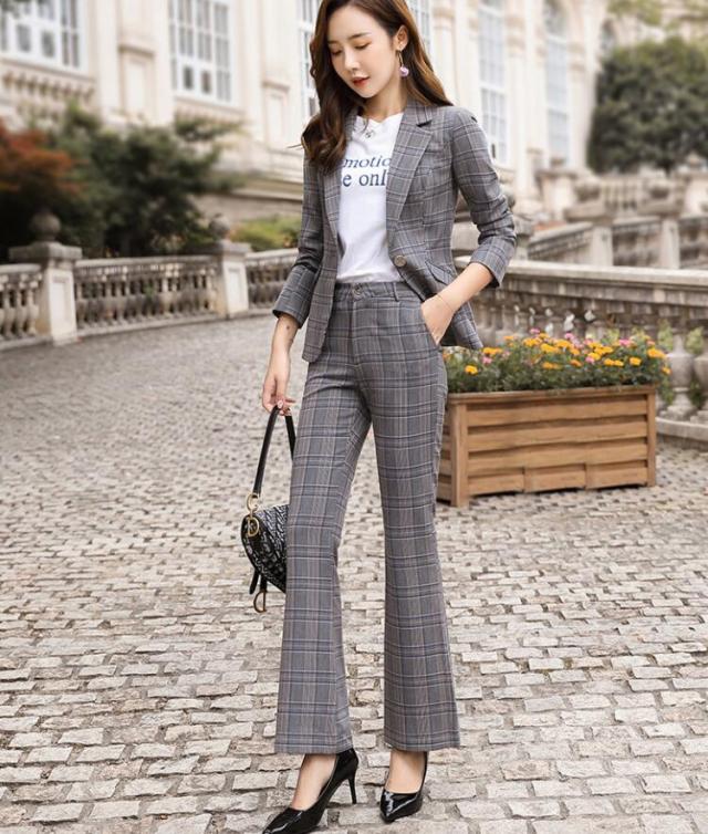 スーツ レディース ママスーツ チェッ スーツ セットアップ パンツスーツ 人気 S M L XL XXL 3XL 4XL イエロー グレー