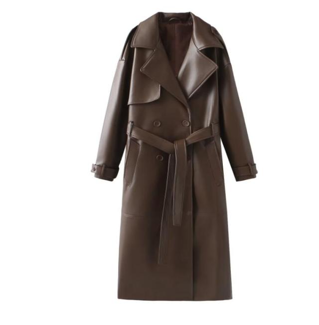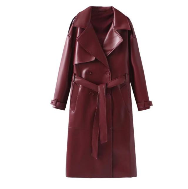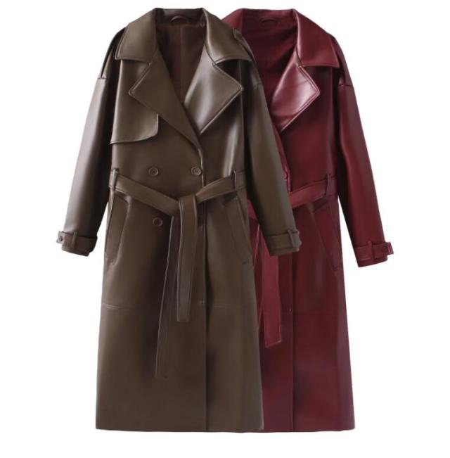 フェイクレザー レザー ロング丈 コー レディースファッション 早い者勝ち S M L XS ワイン ブラウン
