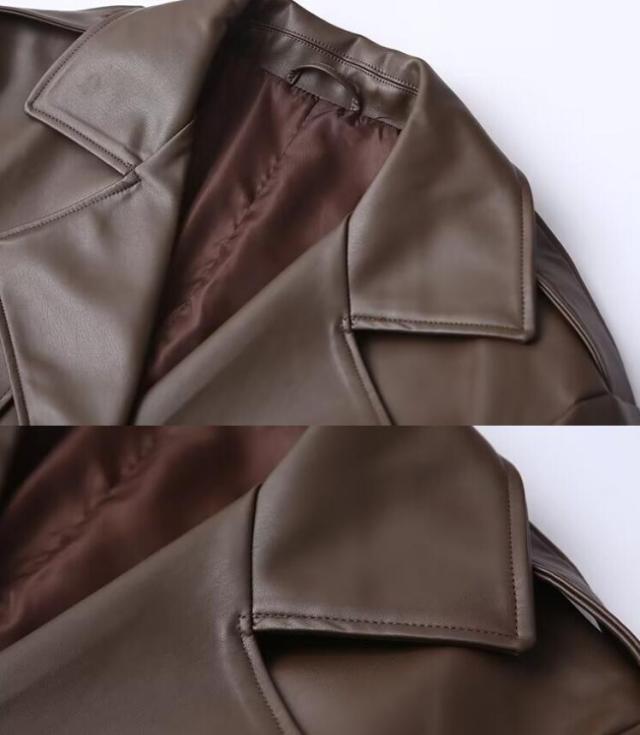 フェイクレザー レザー ロング丈 コート PUレザー シンプル 革ジャン レザージャケット ベーシック 秋アウター 韓国ファッション かっこいい ライダース バイクジャケット