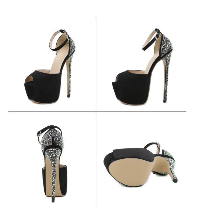 パンプス 靴 レディース キャバサンダル 結婚式 16cmヒール 美脚 美脚パンプス オープントゥハイヒール pumps ラインストーンパンプス キラキラ ピンヒール