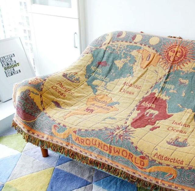 ブランケット 大判 北欧 ソファーカバーマルチカバー 世界地図新生活 SNS話題で着る毛布 インテリア おしゃれ タオルケット 冷房対策 オールシーズン ソファーカバー ひざ ベッドカバー