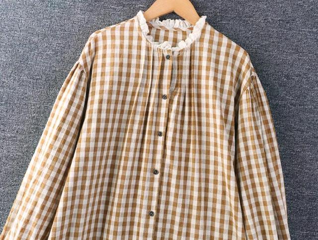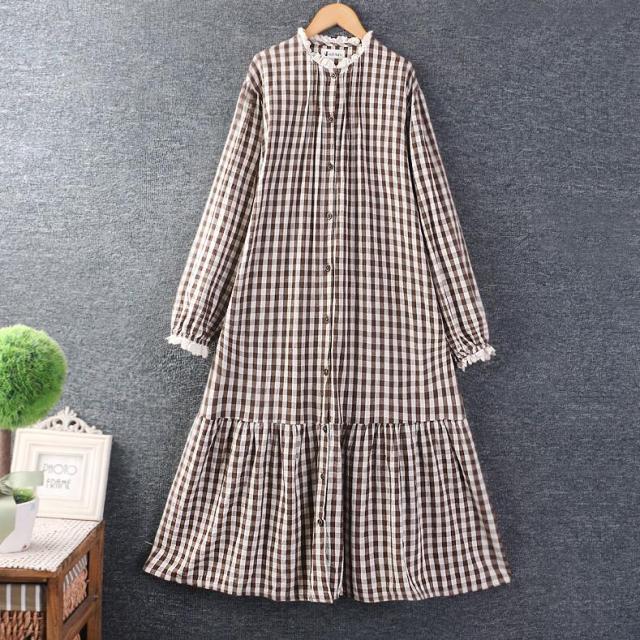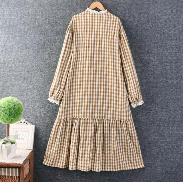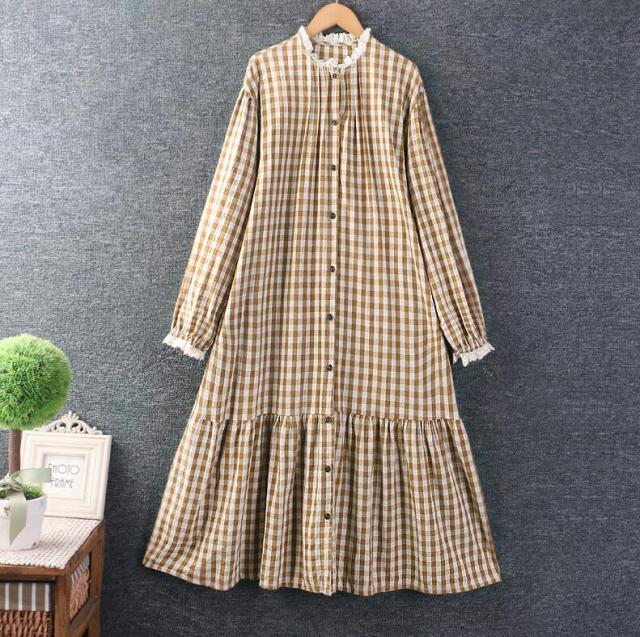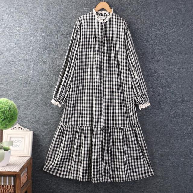 チェック柄ワンピース チュニック レディース ロングワンピース リネンワンピース 長袖 ロングワンピ 綿麻 リネン コットン 綿麻ワンピース ゆったり 体型カバー リラックス ギンガムチェック