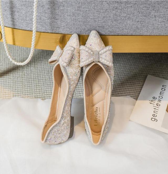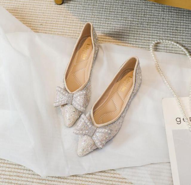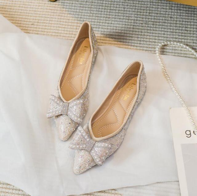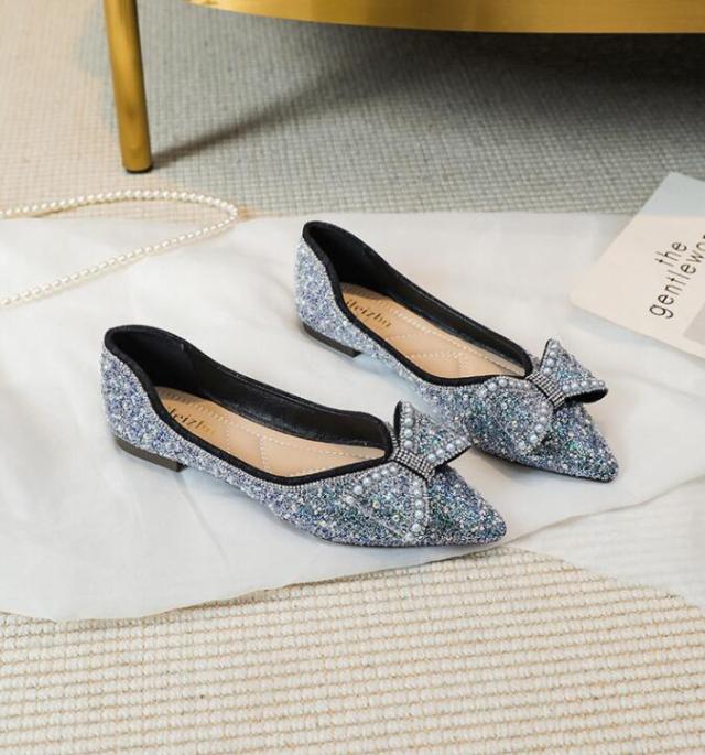 パンプス 痛くない 歩きやすい 走れる キラキラ ポインテッドトゥとんがり フラットパンプス 脱げない 柔らかい 春夏 22.0 ぺたんこクッション入りフラットシューズ 通勤 パンプス通 25