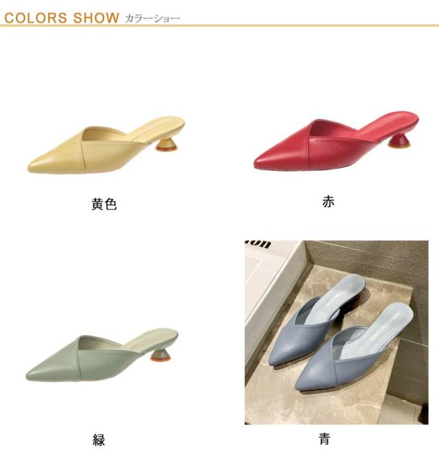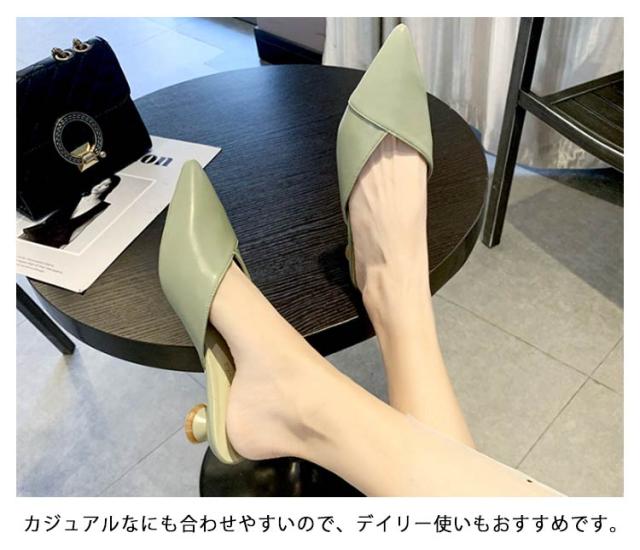 ミュール サンダル レディース ミュールパンプス ポインテッドトゥミュール ローヒール 太ヒール 痛くない 脱げない 靴 美脚 疲れにくい 走れる シンプル 履き心地 美脚 春夏秋 シューズ スリッパシューズ スリッポンサンダル