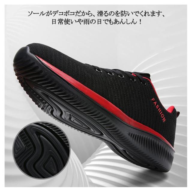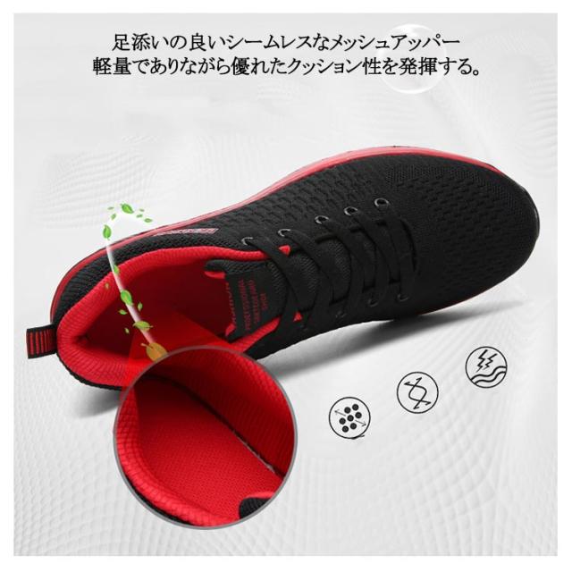| 22.5cm〜30.0cm 軽く、心地よいクッション性と抜群通気性 シンプルなデザインで、男女を問わずに、さまざまなファッションに合わせやすい人気ランニングシューズ。 スポーツシーンだけでなく、通勤や通学、普段履きとしてもカジュアルなコーディネートをお楽しみい ただけます。 通気性も良く、蒸れにくい、着用時の季節を選びません! 見た目のおしゃれさだけではなく、柔らかクッションで、足首にかかる負担をけいげん! ソールがデコボコだから、滑るのを防いでくれます、日常使いや雨の日でもあんしん! 足添いの良いシームレスなメッシュアッパー 軽量でありながら優れたクッション性を発揮する。 | |