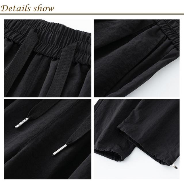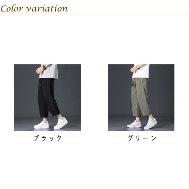 | ゆったりとしたシルエットで、体型カバーや日常のファションアイテムとしてもバッチリ! 両側はポケット付き、ウエストの部分はゴムが入っており紐で調整できます。裾部分はスピンドルコードで調整可能。 通気性の良い薄手生地が蒸し暑い日も風通しを確保。 速乾性が高いので、洗って干しておけば短時間でサラリと乾きます。 旅行先や出張先での部屋着・軽い外出用としても重宝します。 | |