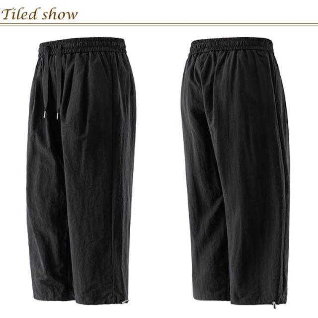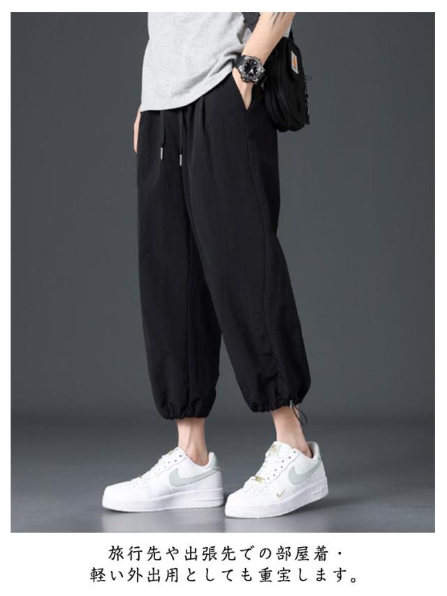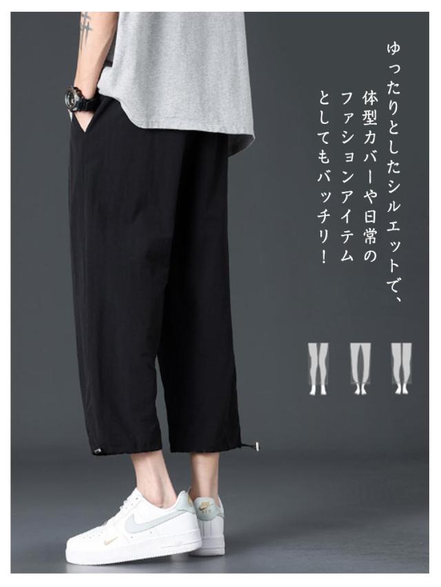 クロップドパンツ メンズ 夏 ハーフパンツ 7分丈 ひざ下 薄手 ストレート ゆったり ウエストゴム 無地 カジュアルパンツ ショートパンツ 大きいサイズ シンプル トレンド イージーパンツ アウトドア スポーツ 送料無料