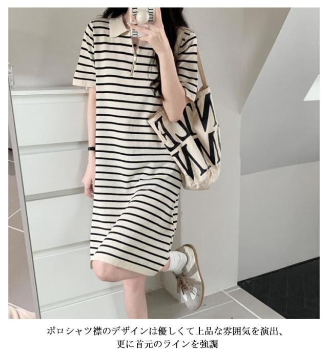 ポロワンピース ポロシャツ ワンピース レディース 半袖 夏 ミモレ丈 大きいサイズ 襟付き スポーティー ポロシャツ風 膝丈 サマーワンピース トップス Tシャツワンピ アメカジ 韓国ファッション 夏服 夏 韓国 おしゃれ M L XL 2XL 送料無料
