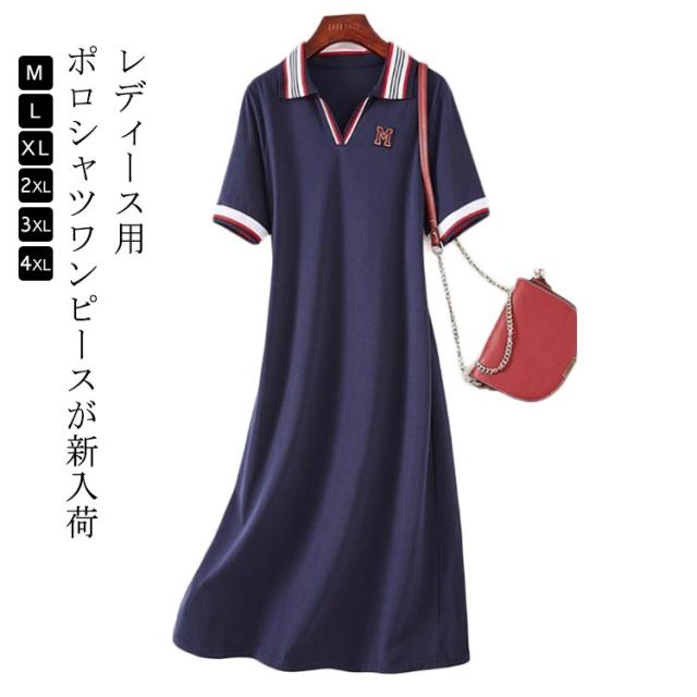 ポロワンピース レディース ポロシャツ 無地 ワンピース 半袖 ポロ襟 お洒落 ポロシャツワンピース ロングTシャツ ミモレ丈 膝丈 ゆったり Tシャツワンピ ミディアム丈 爽やか カジュアル スポーツ 夏 涼しい Aラインスカート シンプル カジュアル 送料無料