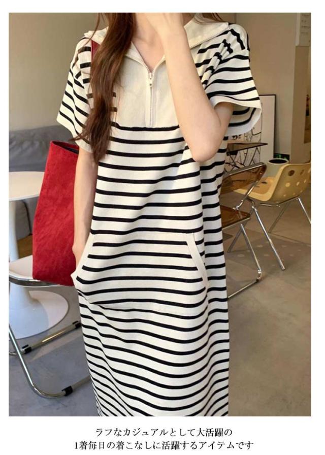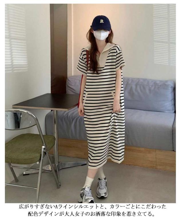 ポロシャツワンピース レディース 半袖 春夏 ロング ロング ポロシャツ ワンピース 襟付き ワンピース ゴルフウェア ポロ襟 お洒落 ポロワンピース ボーダー柄 大きいサイズ カットソー Aライン カジュアル 爽やか 送料無料