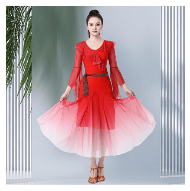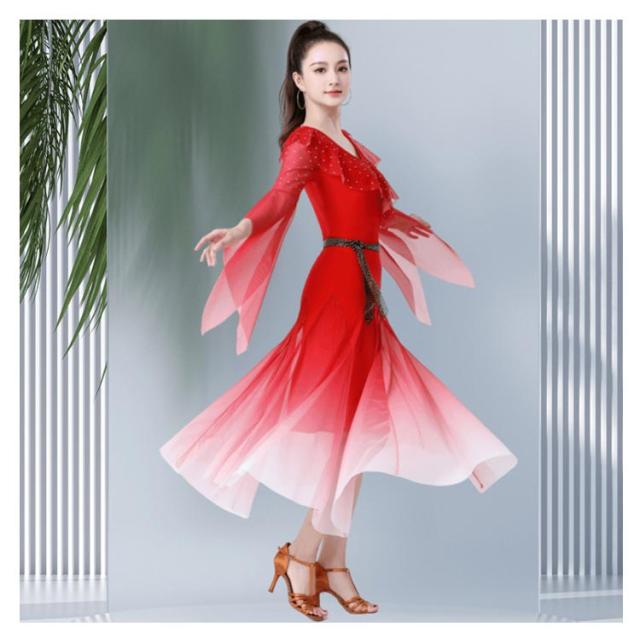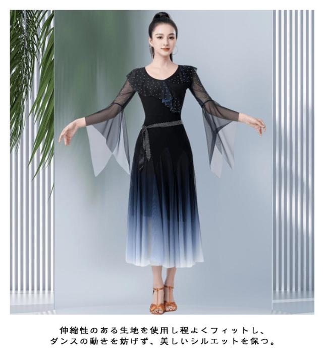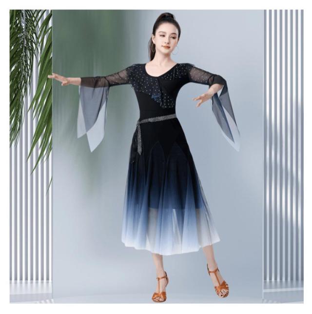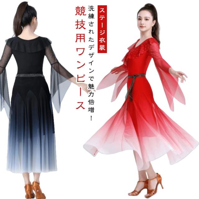 社交ダンス ダンス衣装 社交ダンスドレス モダンドレス 広がる裾 競技用ドレス ダンスウェア ステージ衣装 大きいサイズ カラオケ スタンダード ドレス ワルツ ワンピースドレス 舞台 演奏会 発表会ドレス パーティー デモ 衣装