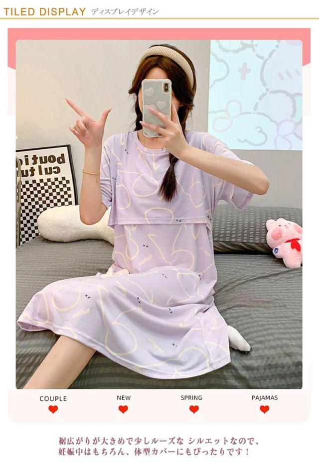 マタニティ ワンピース 春 春夏 夏 授乳口 大きいサイズ マタニティ パジャマ 半袖 マタニティ 服 マタニティ tシャツ マタニティウェア 授乳 ワンピース 授乳 妊婦 ルームウェア カジュアル 妊婦服 授乳口付き かわいい おしゃれ 送料無料