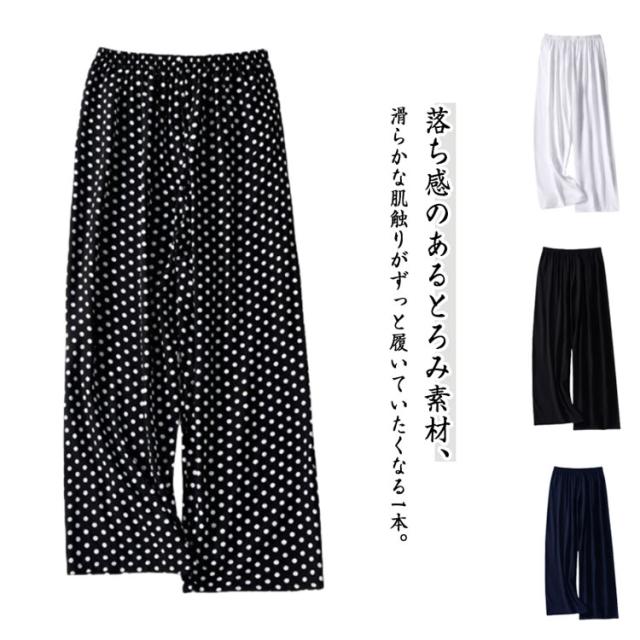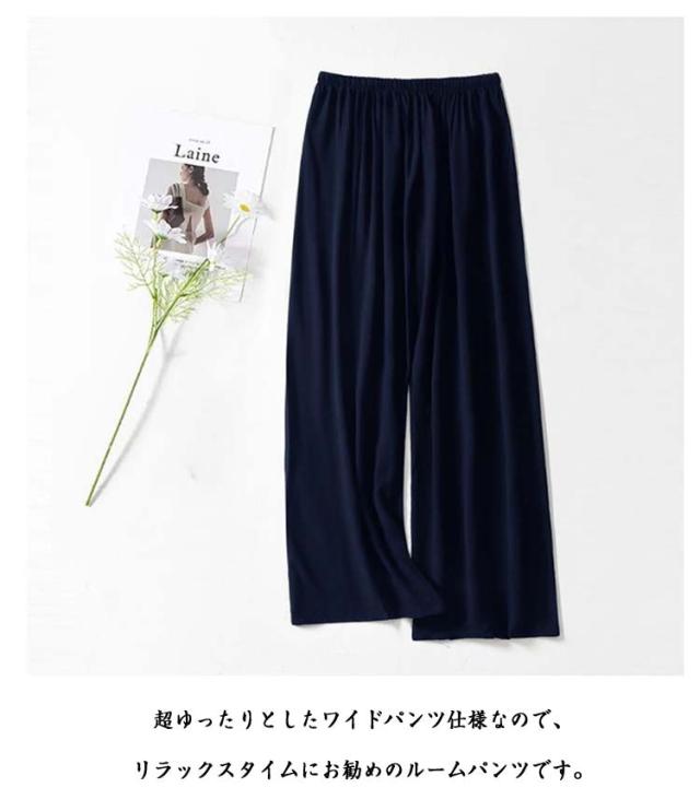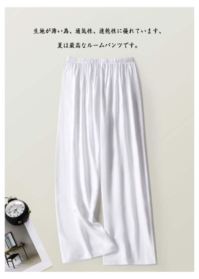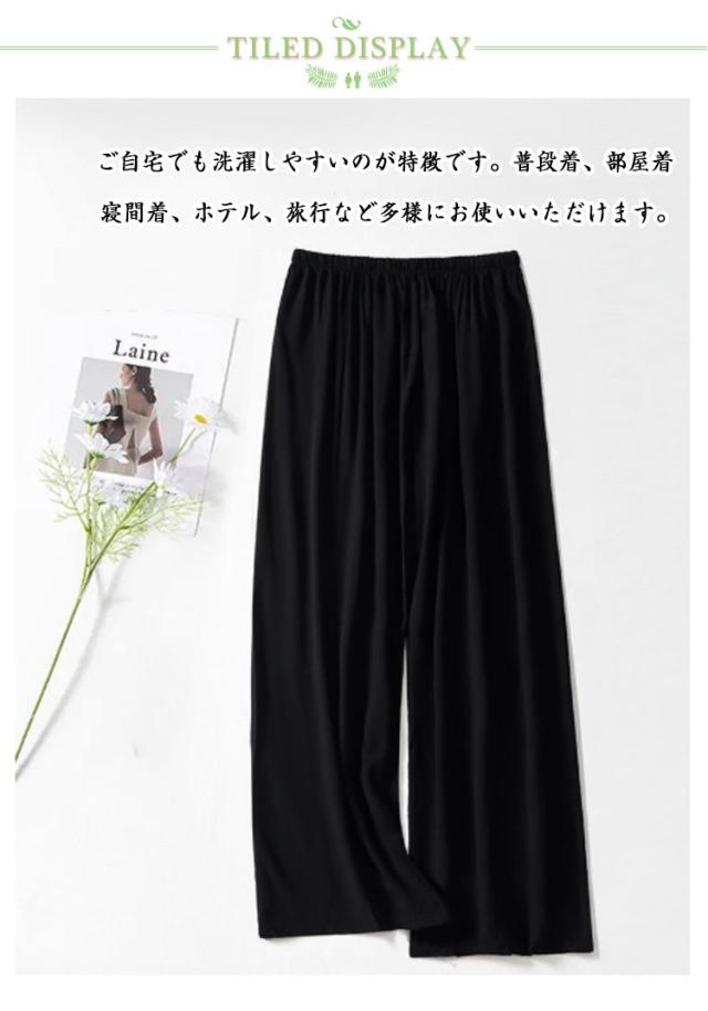 | 落ち感のあるとろみ素材、滑らかな肌触りがずっと履いていたくなる1本。 ご自宅でも洗濯しやすいのが特徴です。普段着、部屋着 寝間着、ホテル、旅行など多様にお使いいただけます。 生地が薄い為、通気性、速乾性に優れています、夏は最高なルームパンツです。 ビスコース、通称綿ふく生地、天然木からできたリサイクル繊維、コットンの肌触りは綿よりも柔らかく、ドレープ感がよく、吸湿通気性があり、夏に最適です。 快適性が高く、吸湿、放熱、柔軟にフィットし、汗を排出した後すぐに風乾かすことができ、汗濡れません。 ゆったりとしたシルエットで、痩せたように見える万能な蚊や虫除けを防ぐことができます。 超ゆったりとしたワイドパンツ仕様なので、リラックスタイムにお勧めのルームパンツです。 | |