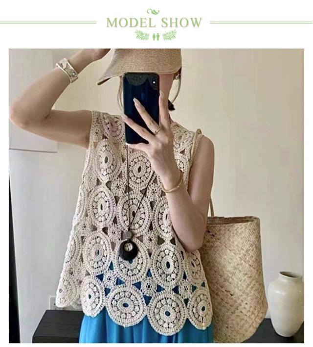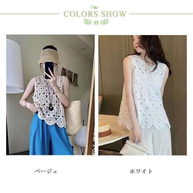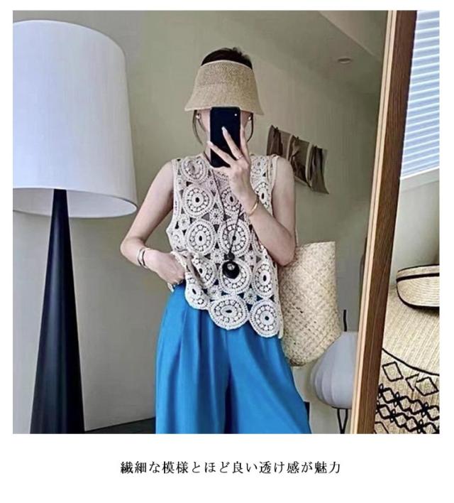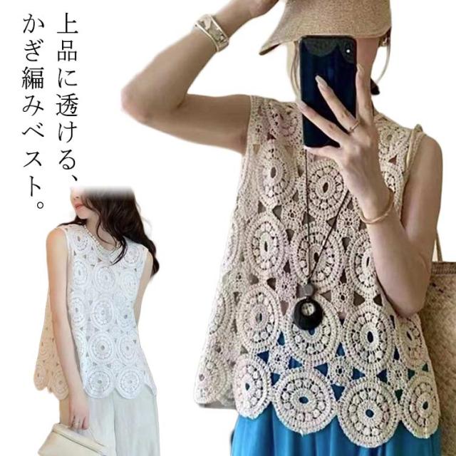 ニットベスト レディース ベスト 透かし編み 春夏 ベスト トップス かぎ編み クロシェ編み ベスト ボタン付き 重ね着 ニットベスト きれいめ カジュアル レイヤード カジュアル おしゃれ 無地 春夏