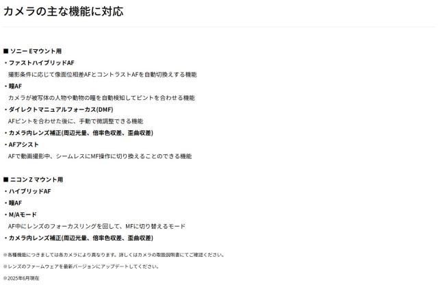 ※本製品は、ソニー株式会社とのライセンス契約の下で、ライセンスを受けたEマウント仕様書に基づき開発・製造・販売されています。
