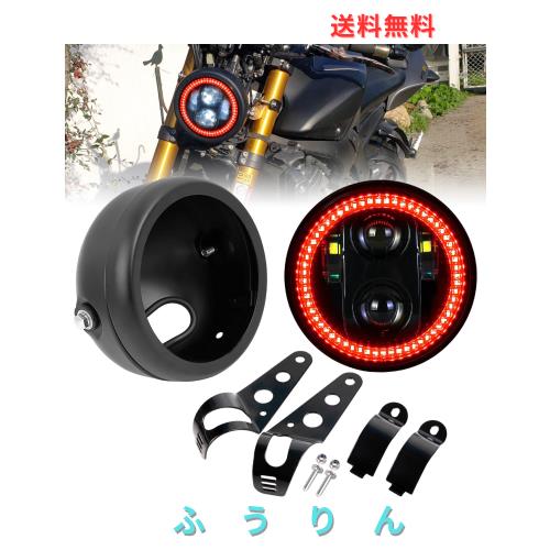 ◆商品名:HENGTUAOTO 5.75インチLEDヘッドライトレッドハローリング付き ヘッドライトハウジングバケット マウントブラケット付き シャドウ 750 レ