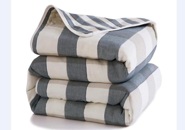 【ガーゼケット】ふんわり柔らかな風合いながら、サラッとした感触のガーゼケットです。熟練の職人がしなやか細い糸を使用して平織り組織を6重に織り上げました。ガーゼの特徴として吸湿性・通気性がとても優れているので、水分を素早く吸収して、汗をかいてもすばやく乾いて気持ちいいです。
