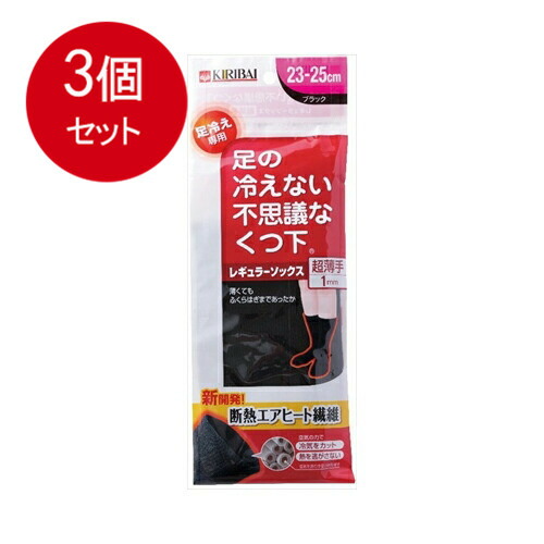 3個まとめ買い 小林製薬 足の冷えない不思議なくつ下 レギュラーソックス超薄手 ブラック 23-25cm メール便送料無料 × 3個セット