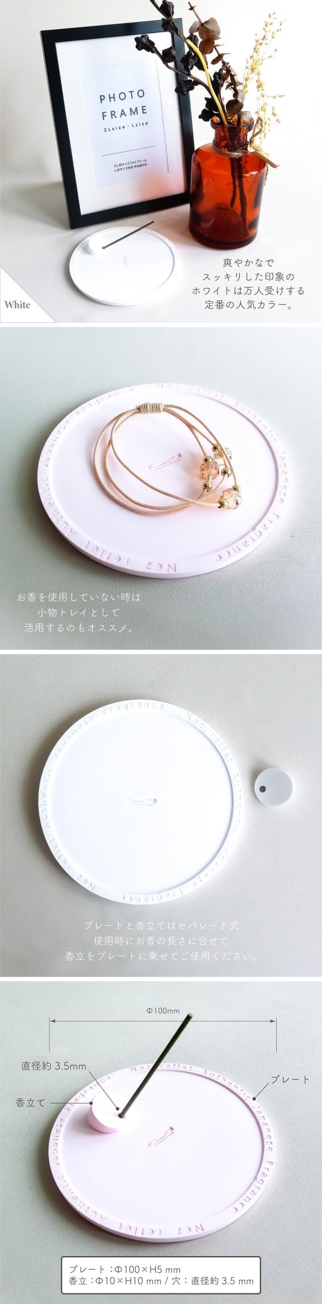 プレートと香立てはセパレート式、使用時にお香の長さに合わせて香立てをプレートに乗せてご使用ください。お香を使用していない時は小物トレイとして活用するのもオススメ。3.5mm程度までのお香をご使用いただけます。